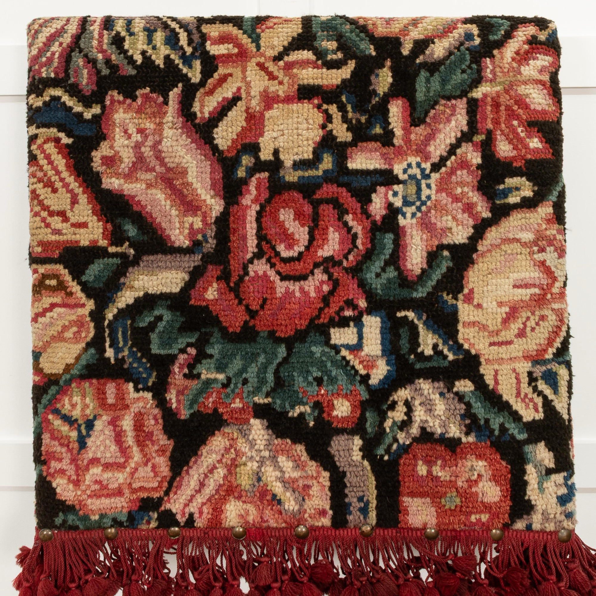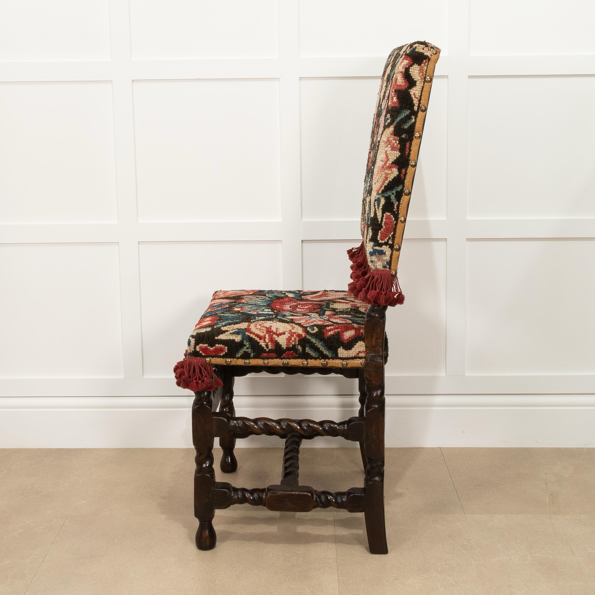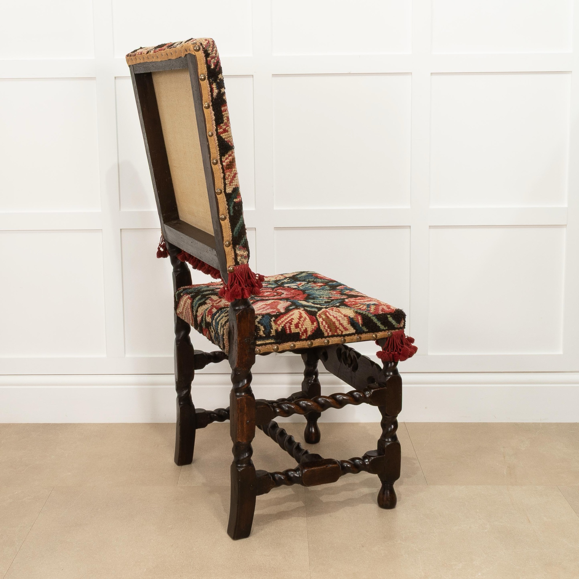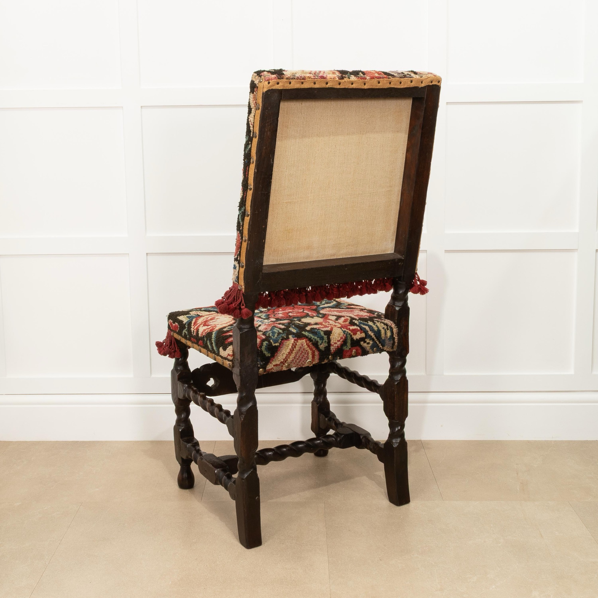 The turkeywork on this example was cleaned/restored under the guidance of the Late Victor Chinnery, the esteemed author of 'Oak Furniture: The British Tradition', first edition 1979