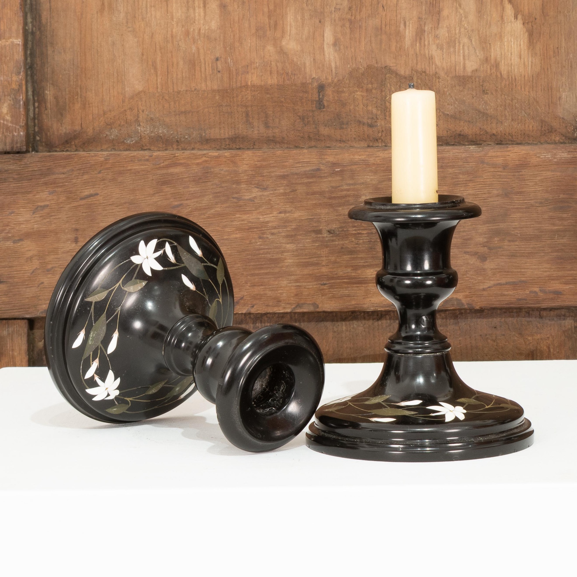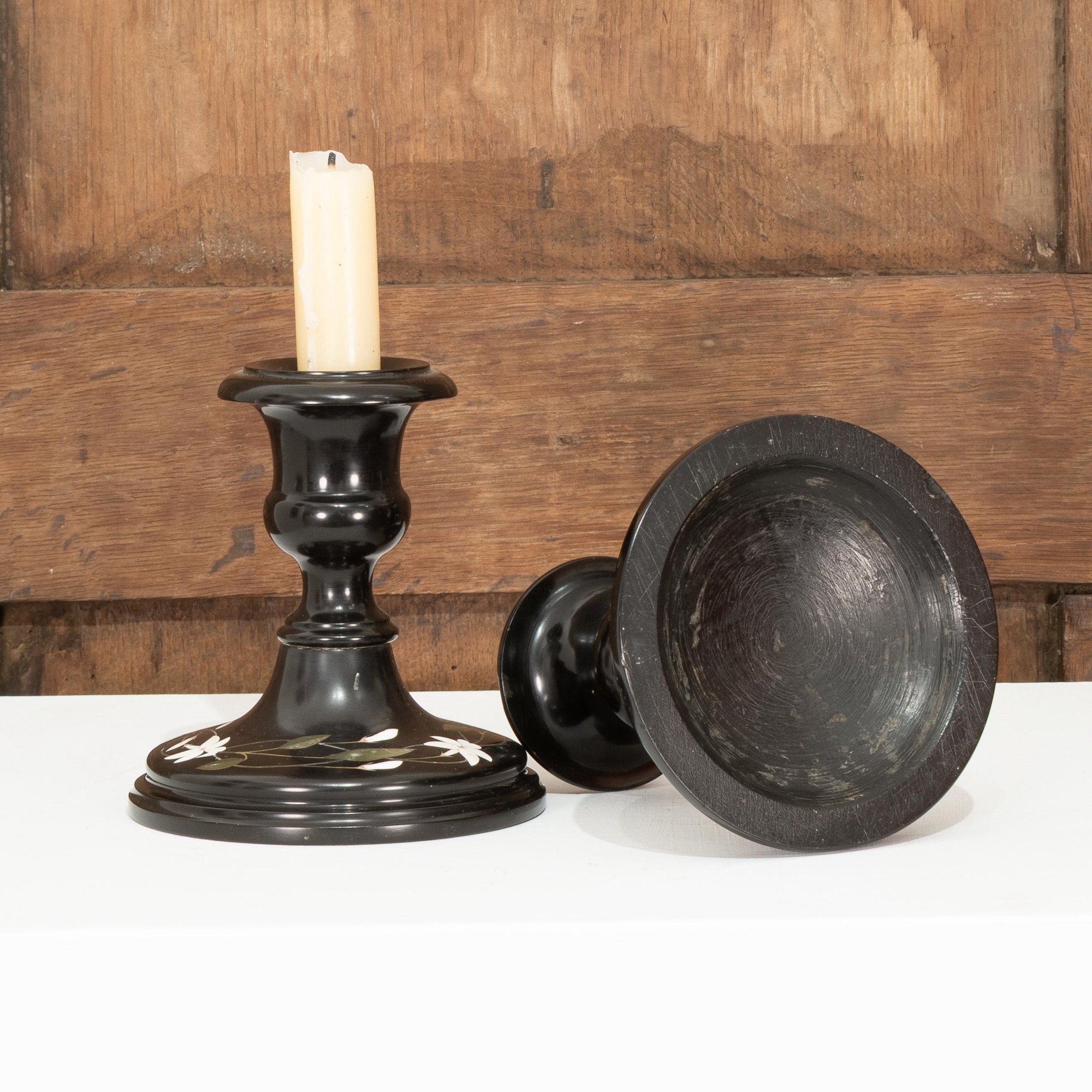 A pair of Victorian Ashford black 'marble' candlesticks, Derbyshire, circa 1850