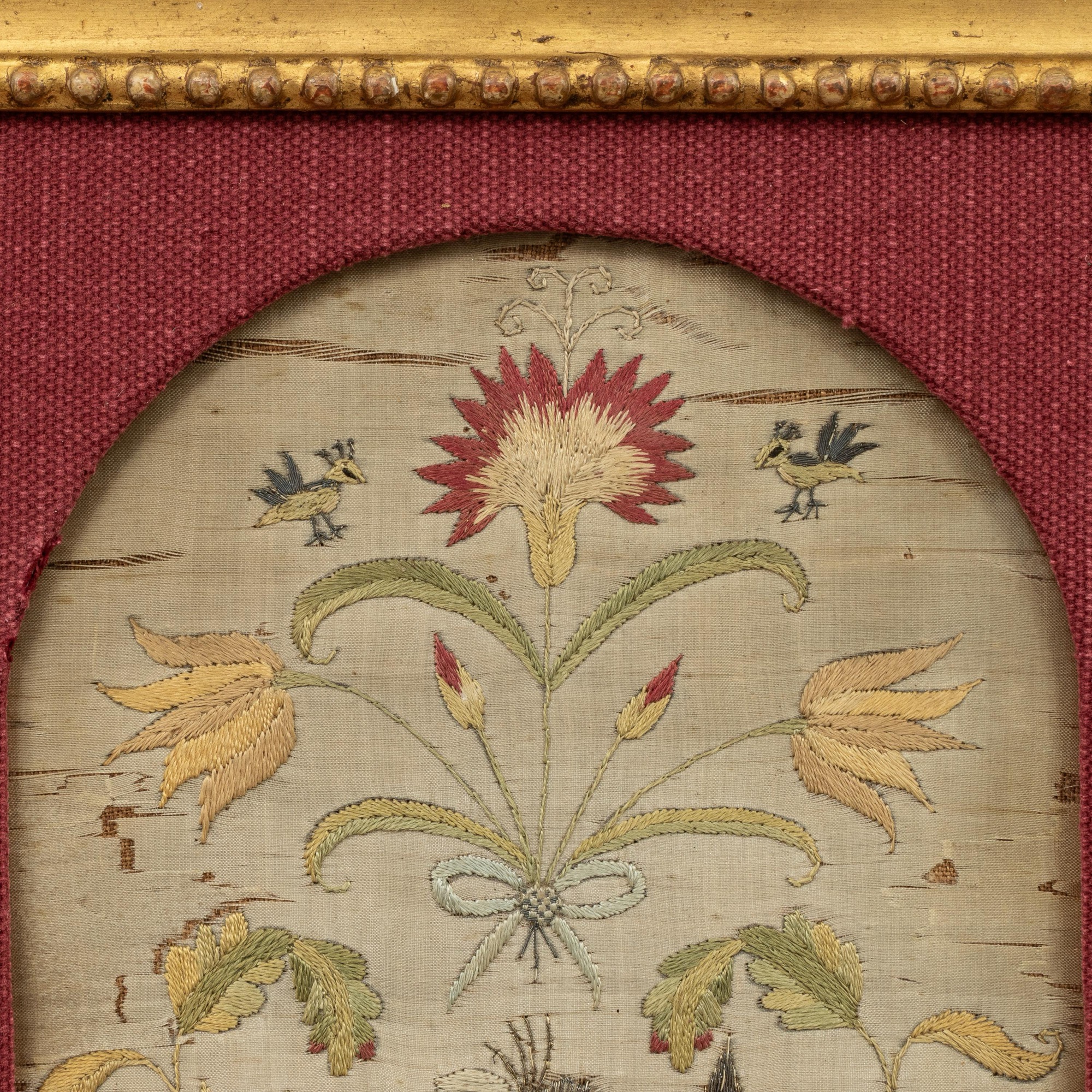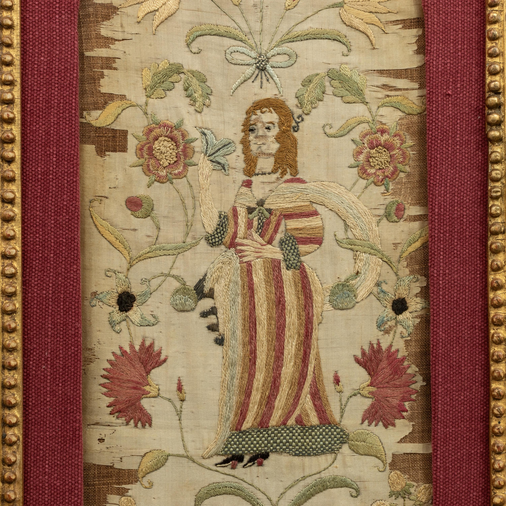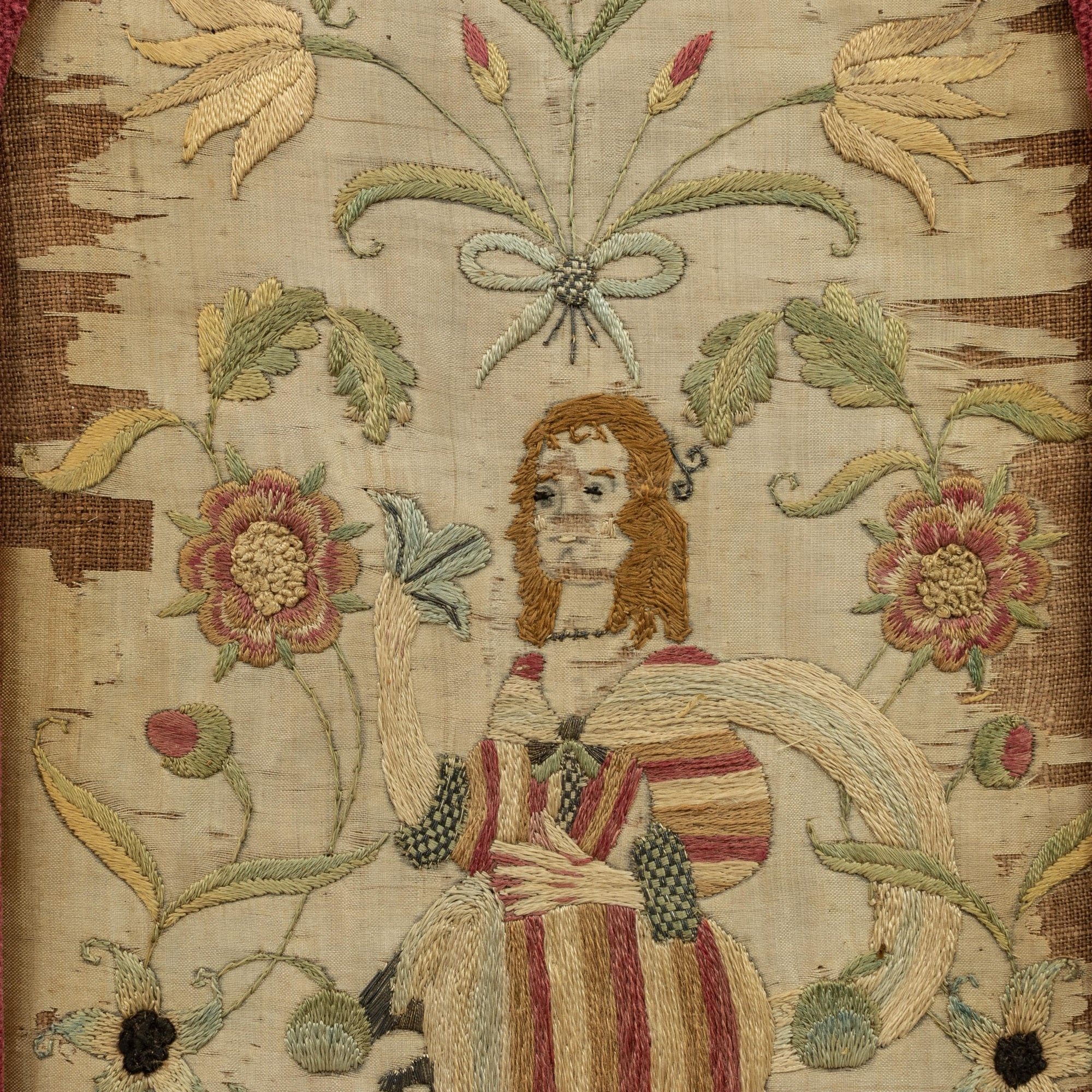 A pair of 18th century embroidered silk pictures, circa 1700-30