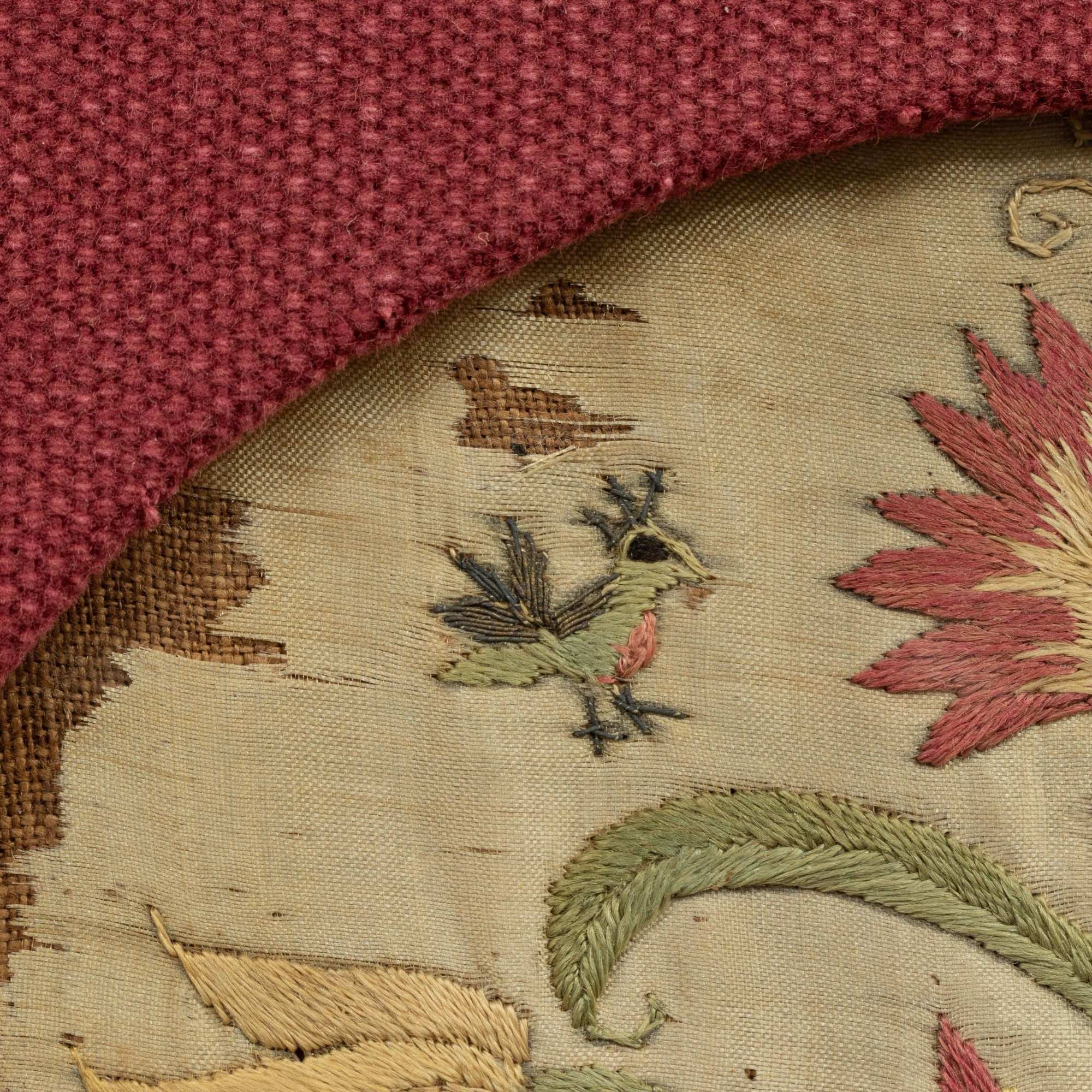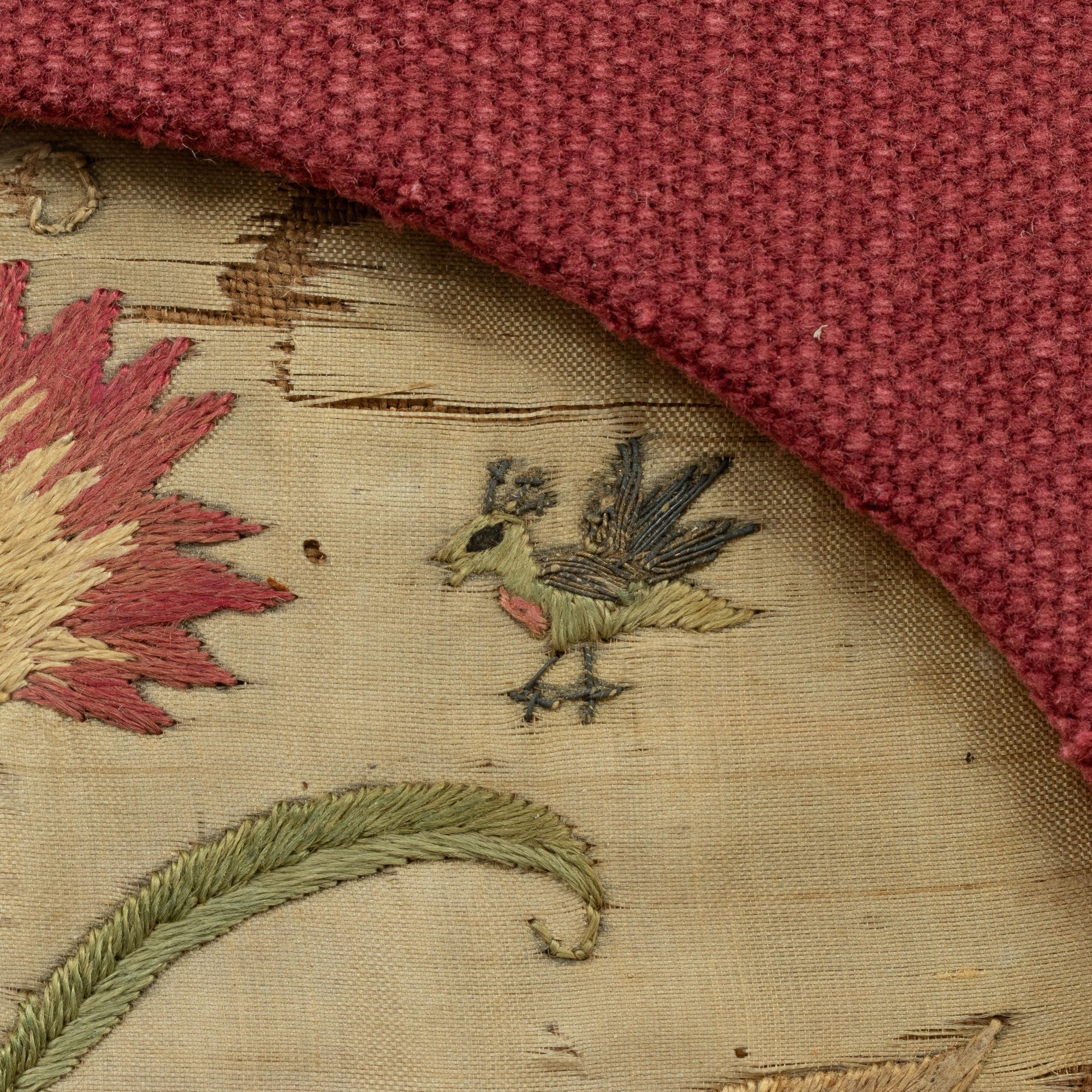 - Condition Good colour and condition to the embroidery threads however some splitting to the incredibly fine silk ground. Overall this is still a very attractive piece, despite the fragility of the silk ground, and would look lovely as part of a decorative scheme rather than a connoisseur piece.