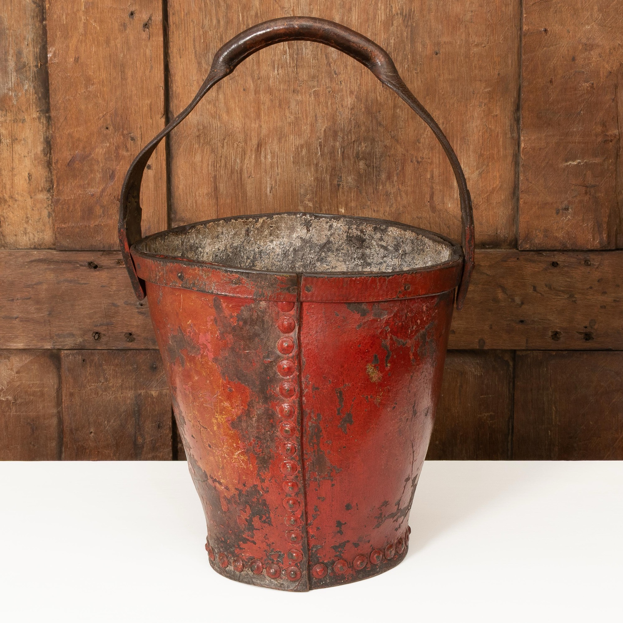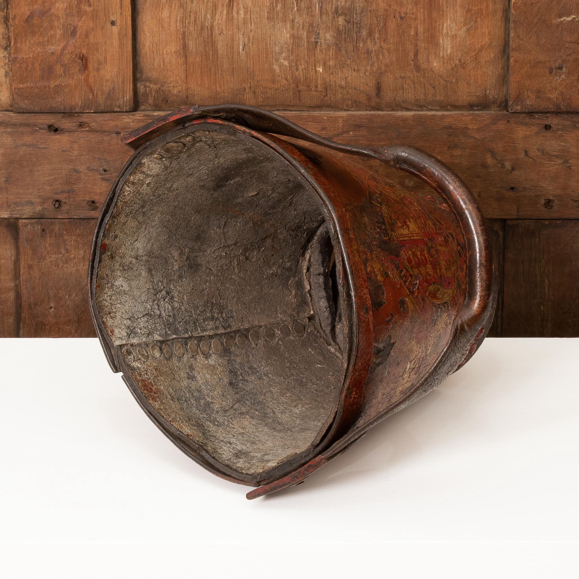 A Victorian red leather fire bucket, circa 1850