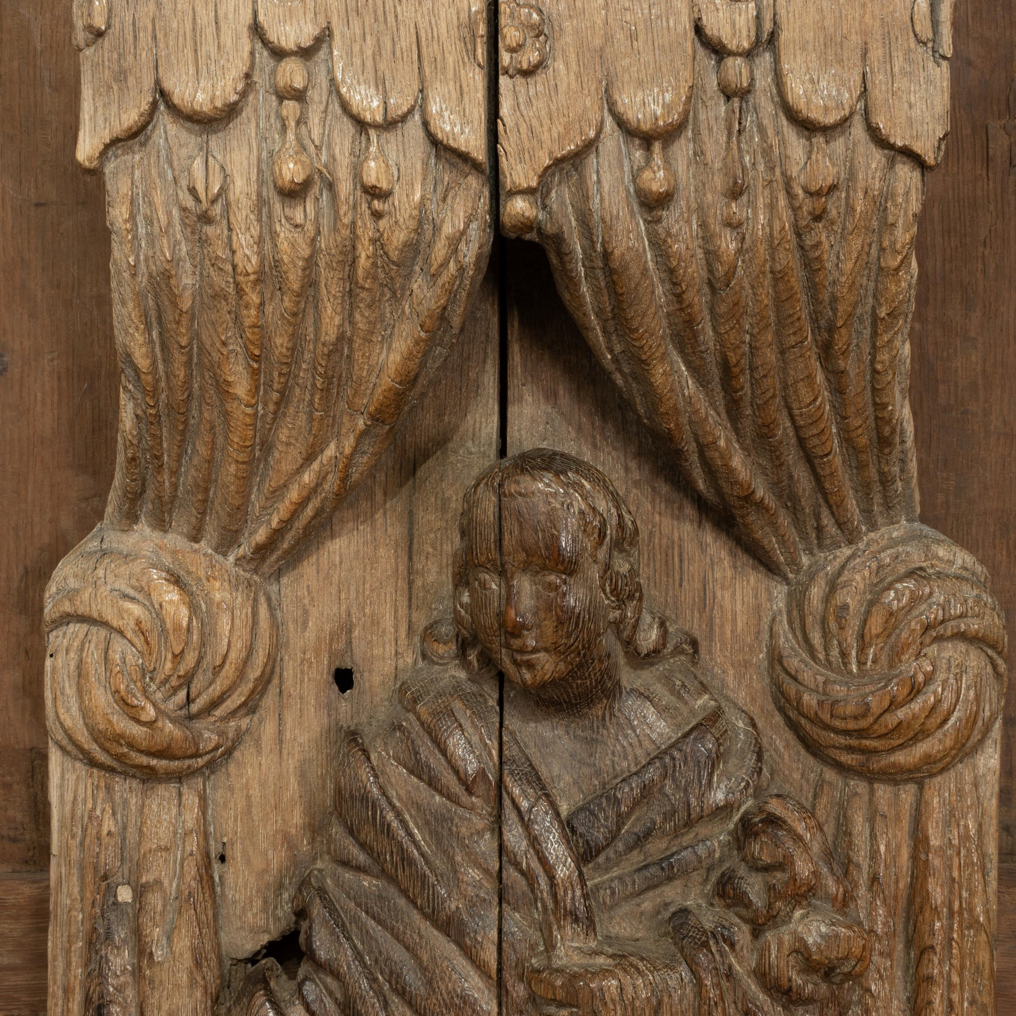 Former collection of Francis & Samuel Wolsey, leading 20th century dealers of oak furniture and works of art. Donated by them to a Christie's charity auction, 6 November 1956, Lot 80, to benefit the Hospital of St. John and St. Elizabeth, hence the specific choice of donation