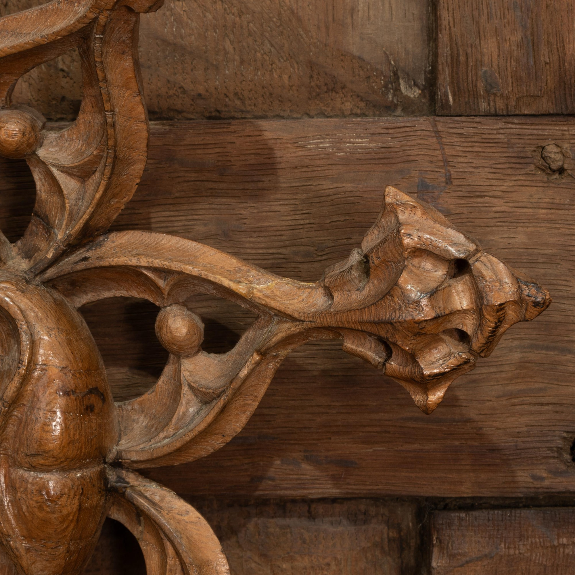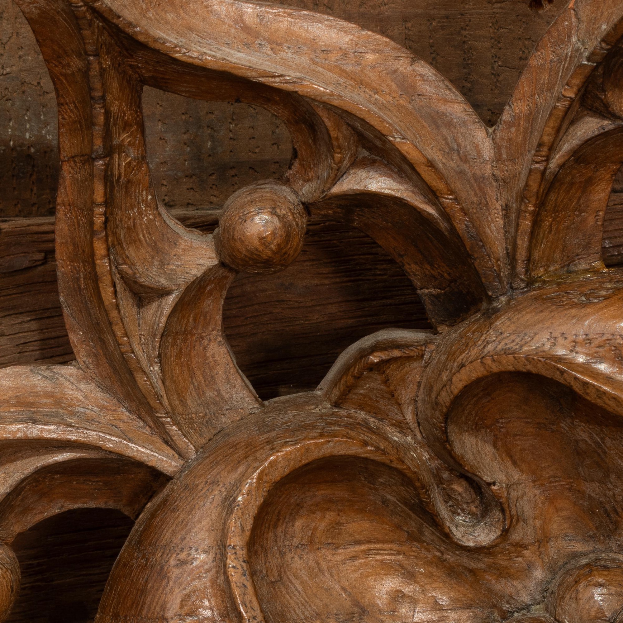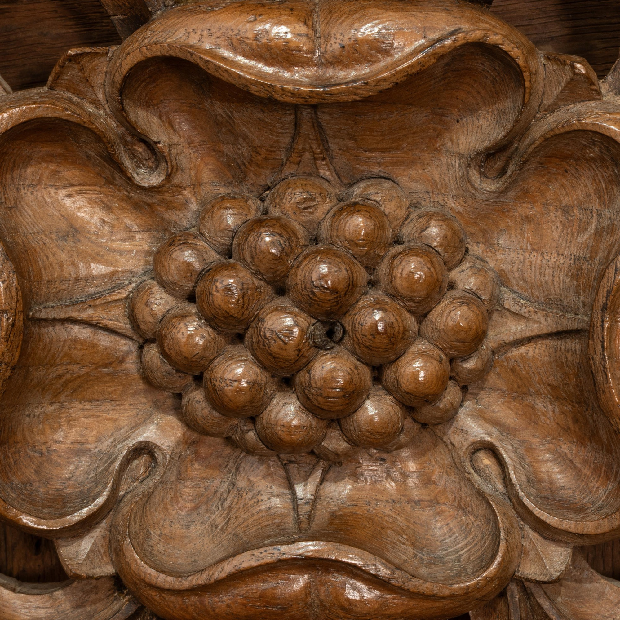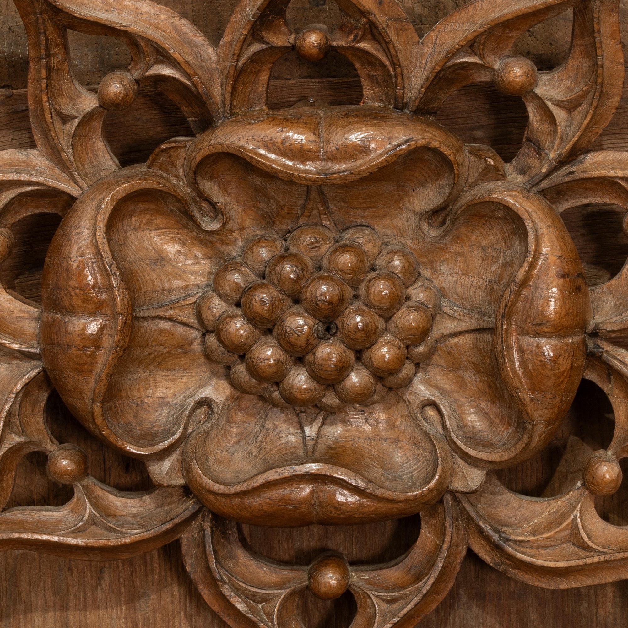 In the mid-15th century manner, centred by a flower, with seeded centre, within a radiating carved and pierced tracery surround, with triform leafy terminals