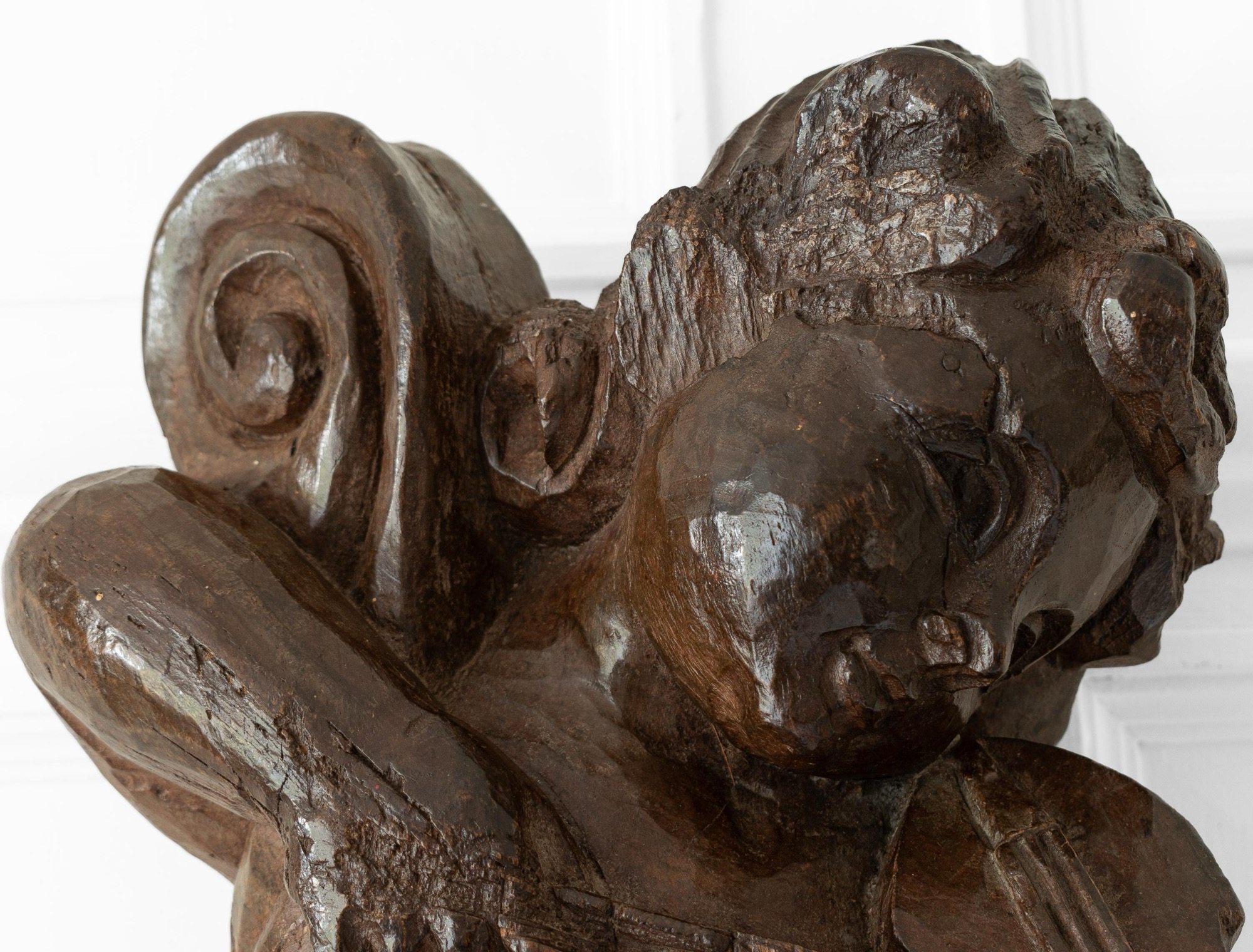 A large Elizabeth I walnut putto or cherub, circa 1590