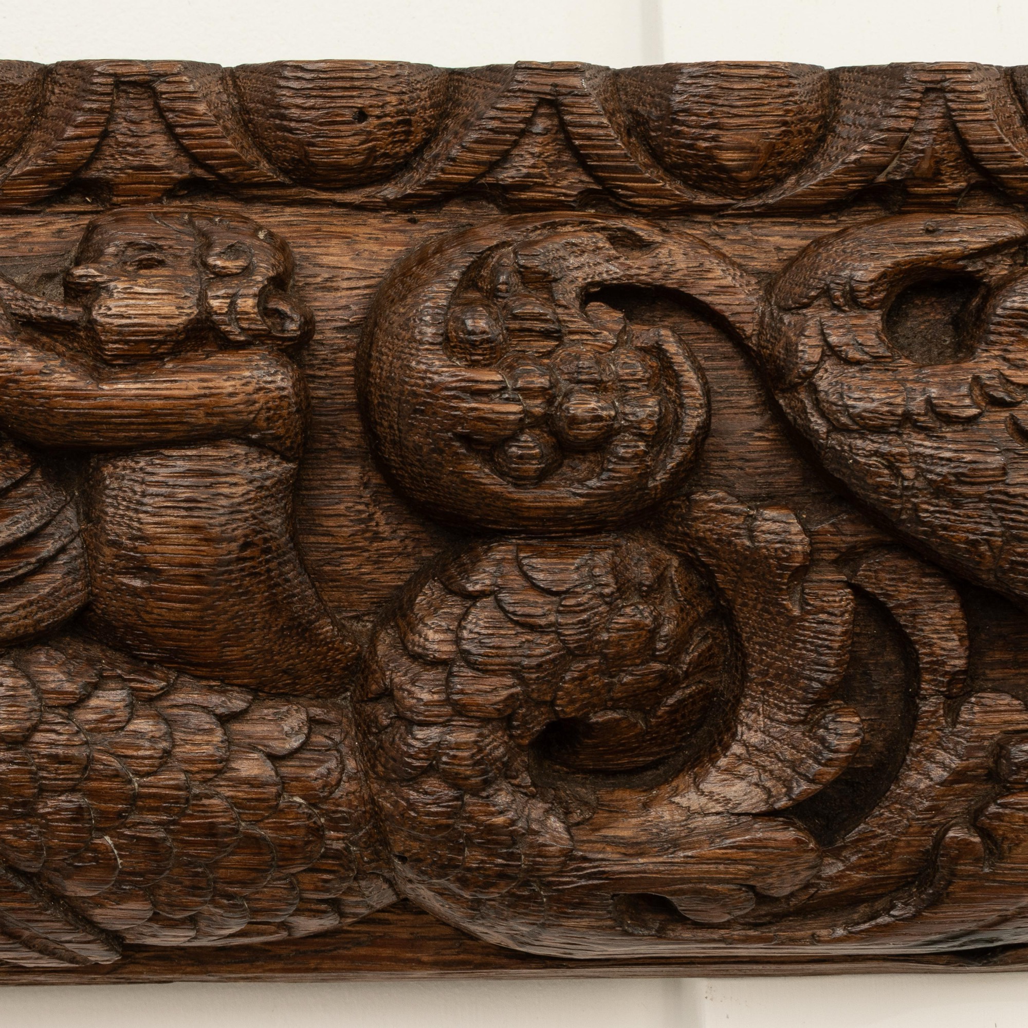 A carved oak rail, Flemish, circa 1640