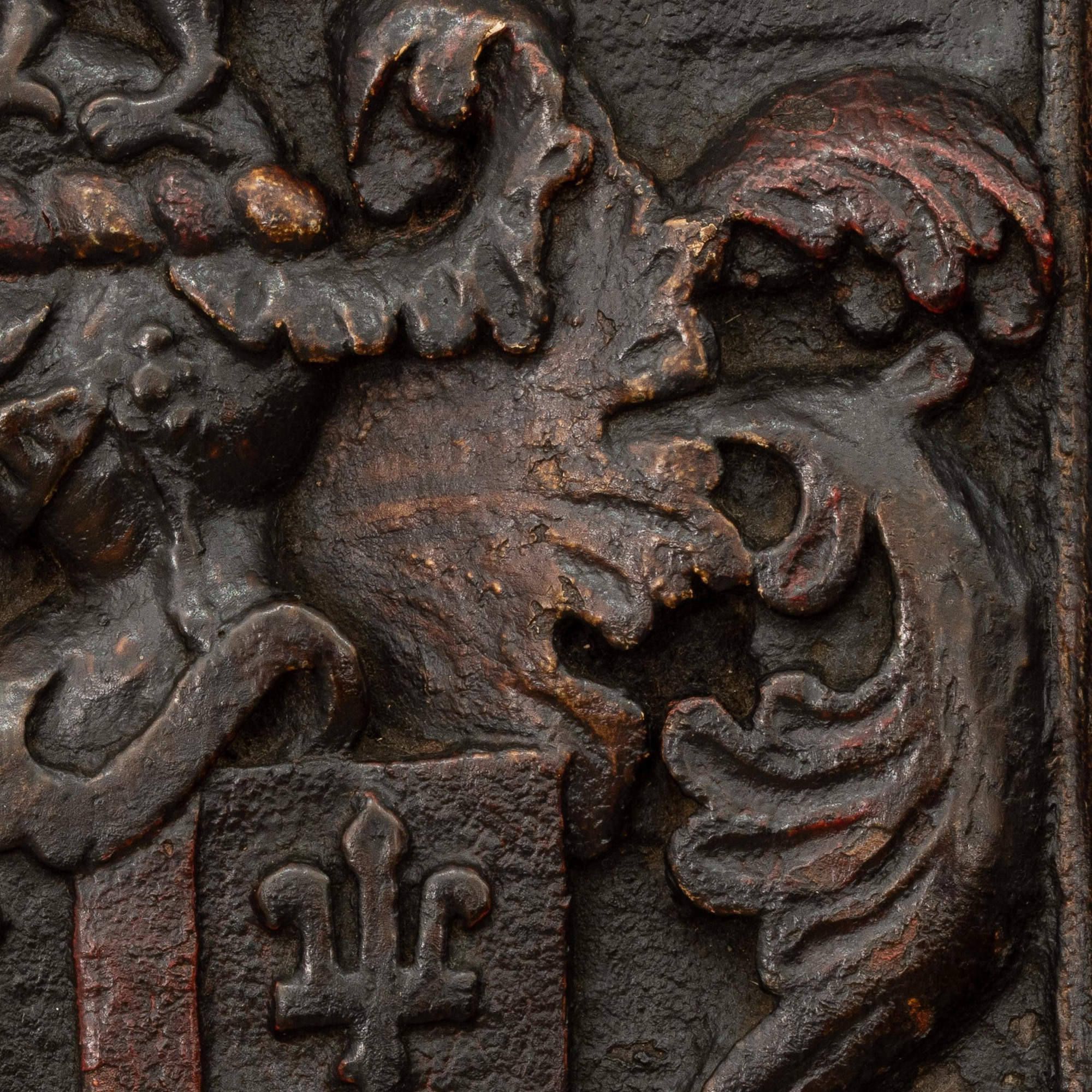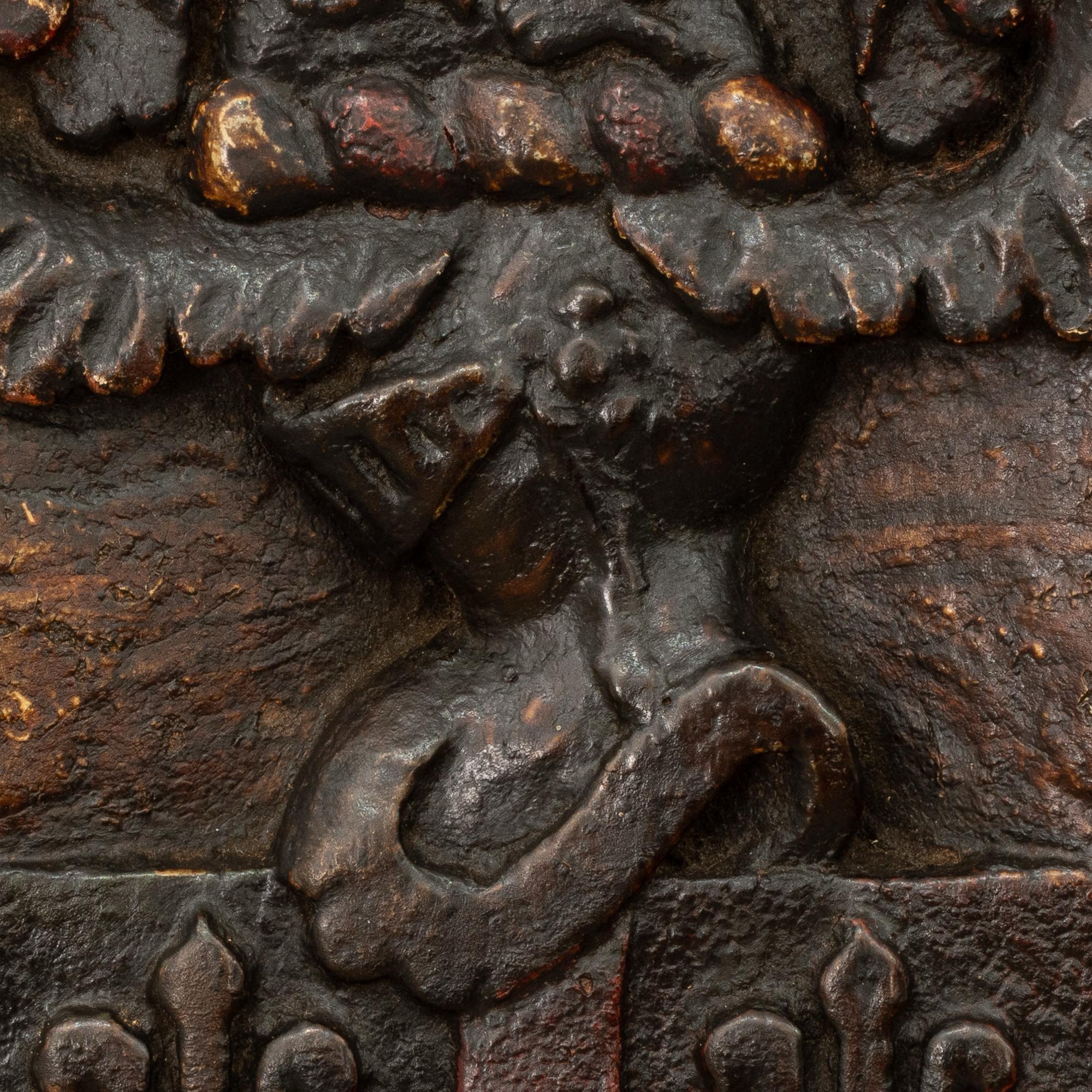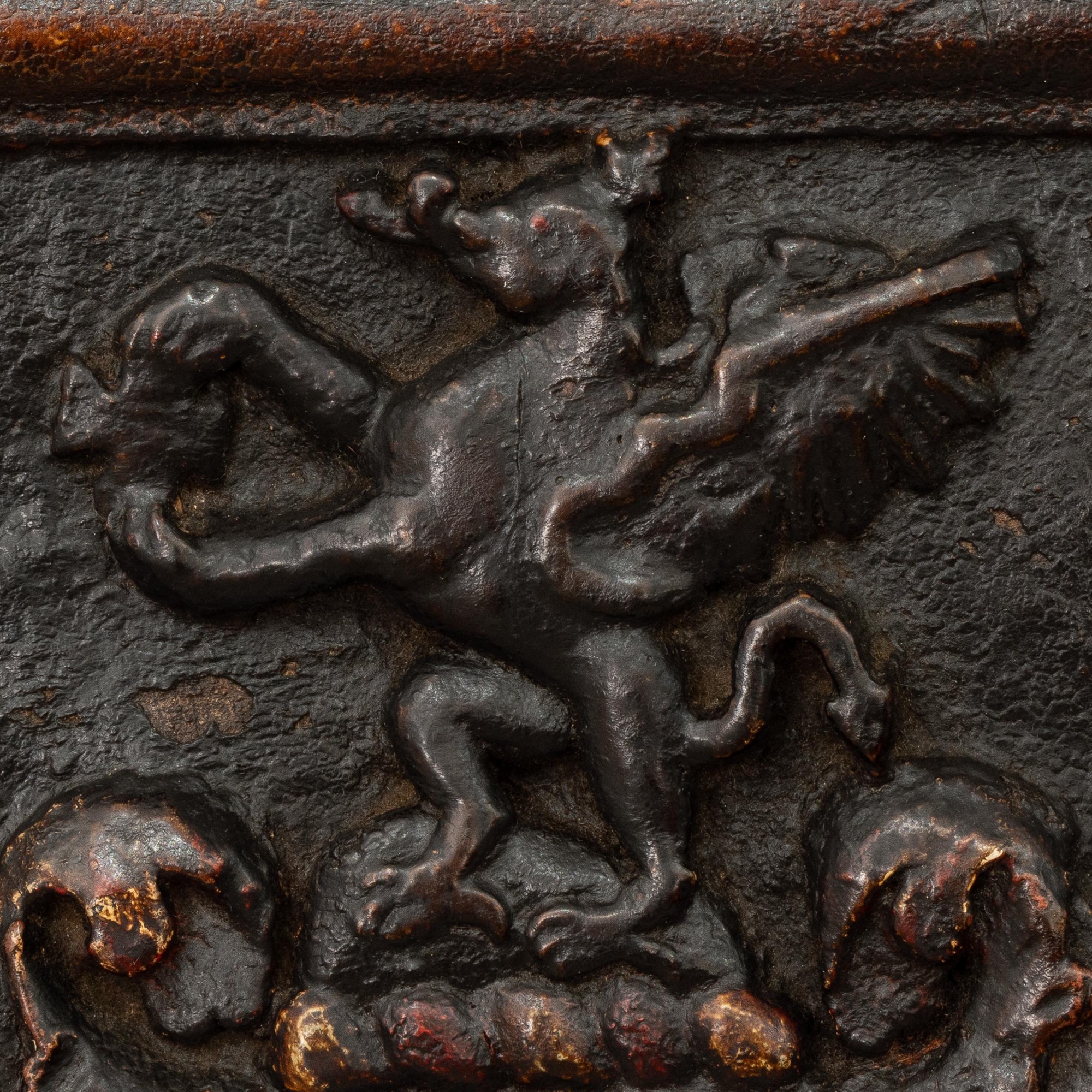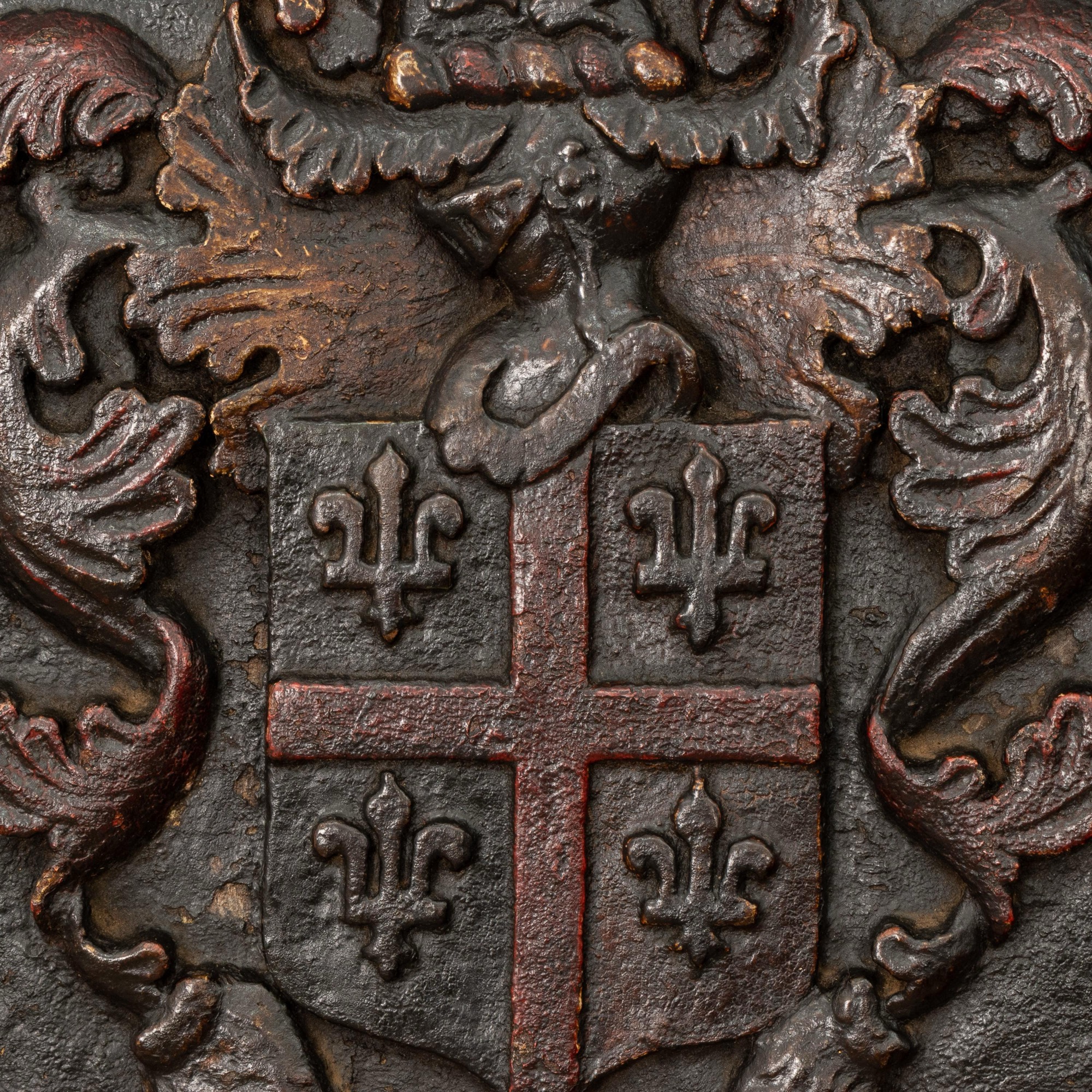 The Arms of Bank: A Charles II oak and polychrome-decorated armorial panel, Yorkshire/Lancashire, circa 1660