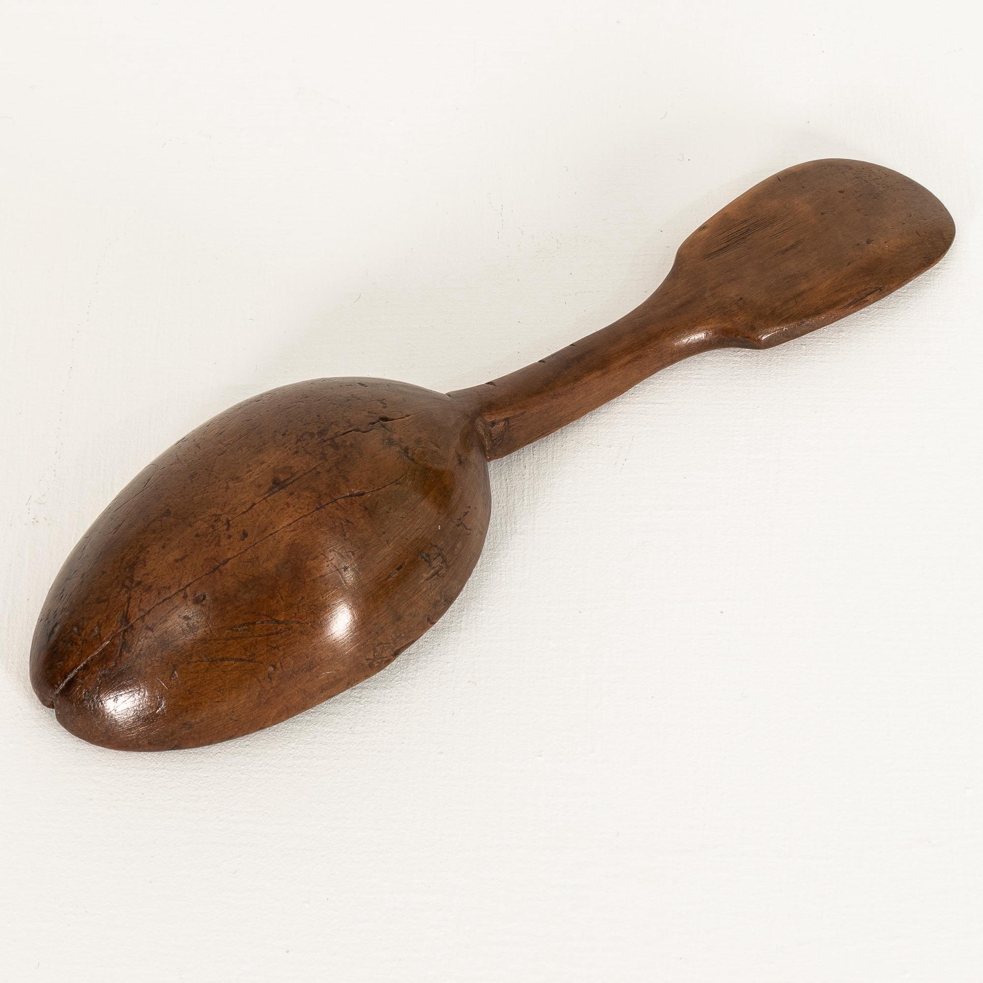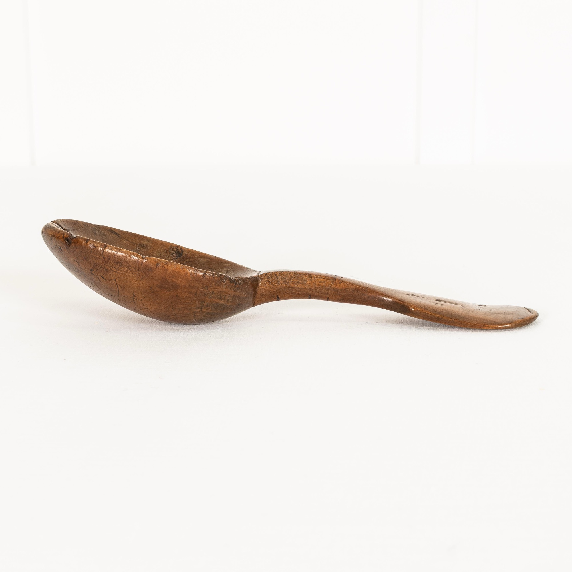Apple or pear, with traditional sized bowl and short stem with fiddle-shaped handle, good patina