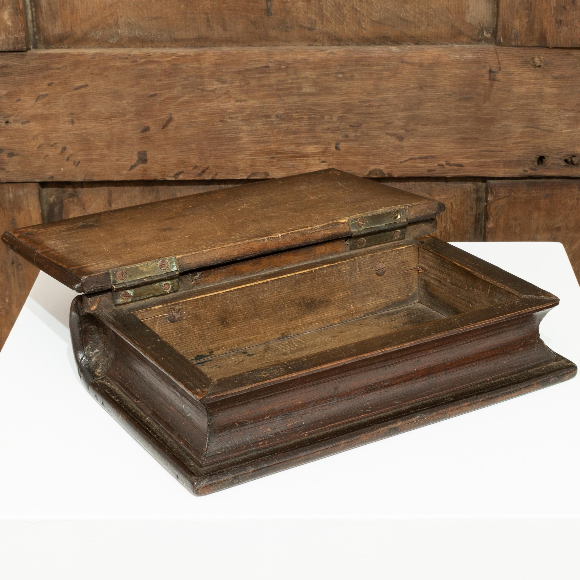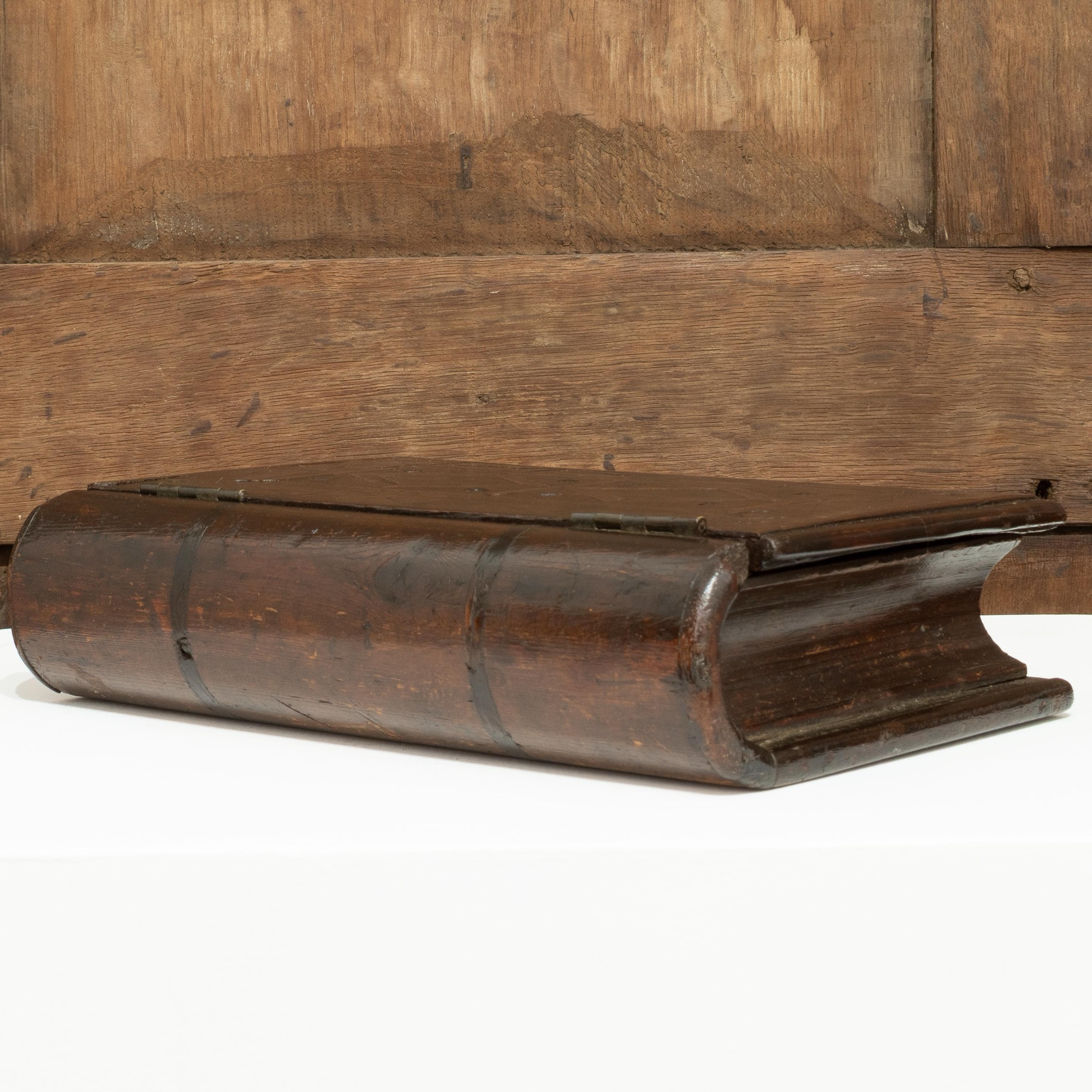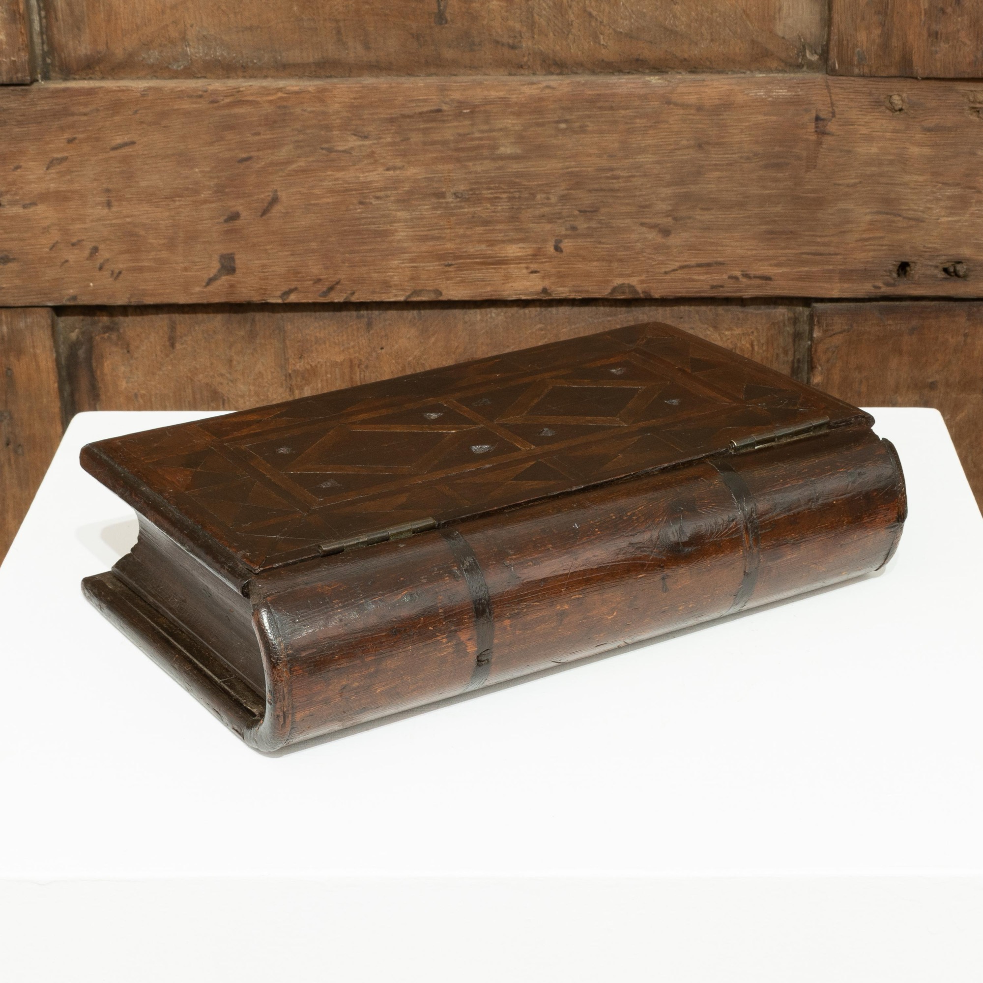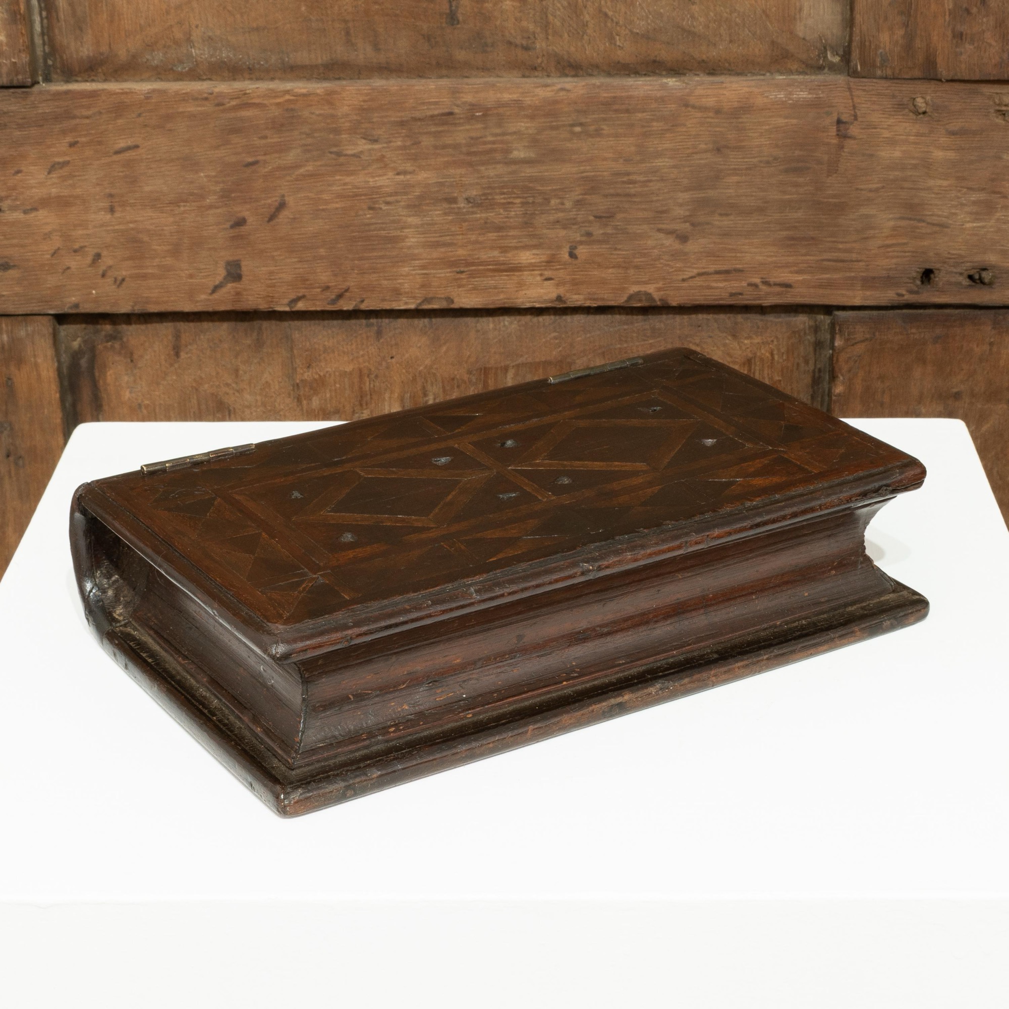 A Victorian pine and inlaid box, in the form of a book, circa 1880